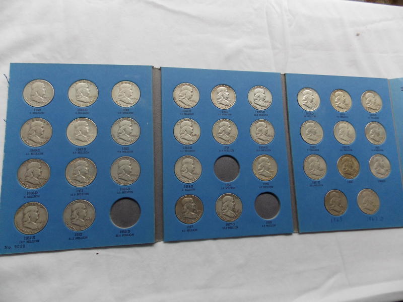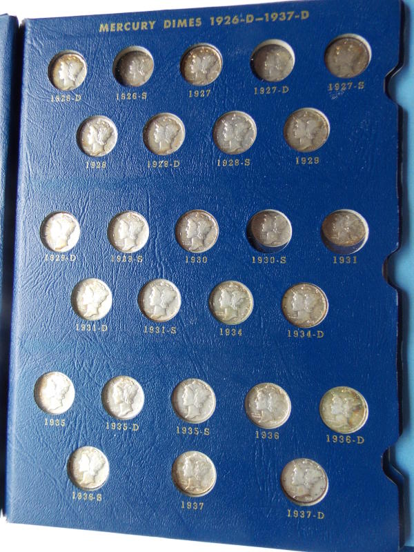 Liberty silver dollars, Standing Liberty & Franklin 1/2 dollars, Washington quarters, Roosevelt & Mercury dimes, National Time Recorder Co. time clock made in England, Whistling Willy clocks, Seth Thomas mantels, Atuberry Ansonia Co. kitchen, United, Regulator, Empor, Waterbury, Ingraham, New Haven, Ben Franklin, arts & crafts, eight day wall, Small World by Rythym, etc.