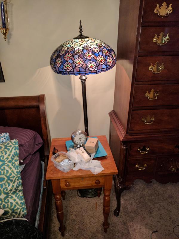 tables & chairs, floor lamps, 55” flat screen TV, watches, maple butcher block, 22” peacock stained glass floor lamp, cast iron chairs, benches, ornate fencing, electrical appliances, wall clocks, hand & power tools, pedal car, Trek & Schwinn bikes, etc.